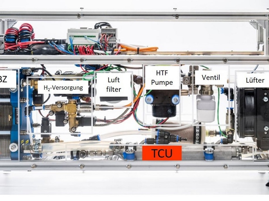 Abb. 6: Bild eines Brennstoffzellensystems mit integrierter TCU (unten, rechts), siehe
