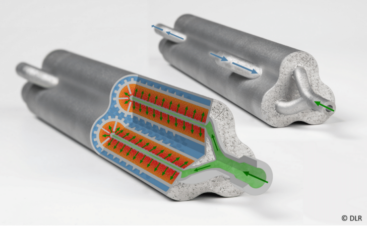 Am Deutschen Zentrum für Luft- und Raumfahrt (DLR) wurde in den vergangenen Jahren ein neuartiges Modul für diese Anwendung entwickelt. Kernstück ist ein Reaktordesign, das in der Lage ist, hohe thermische Leistungen aus dem MH-Pulver auf ein externes Wärmeträgerfluid zu übertragen, wie zum Beispiel ein Standard-BZ-Kühlfluid. Dazu musste eine Geometrie für einen optimierten Wärme- und Gasübergang entwickelt werden, die weitere Randbedingungen wie die Dichtheit gegenüber H2 sowie das Pulverhandling für den Füllvorgang des Materials berücksichtigt.