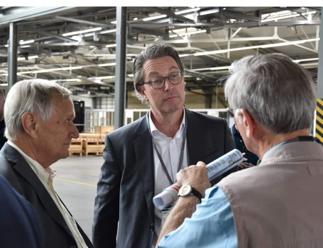 Neben dem Firmeneigentümer Martin Volke (l.) war der ehemalige Bundesverkehrsminister Andreas Scheuer einer der Ehrengäste – hier im Gespräch mit Dr. Rainer Albrecht, dem FES-Gründungsgeschäftsführer von 1992 (r.)