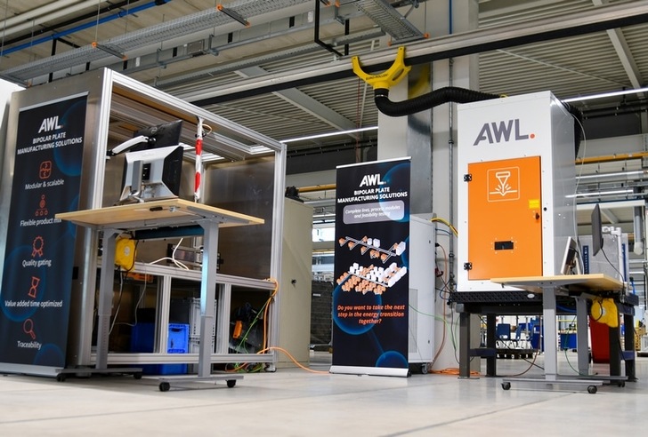 Der Laserschweißspezialist AWL-Techniek Holding aus den Niederlanden entwickelt Laserschweißgeräte und komplette Fertigungsstraßen für Bipolarplatten. Die neue Laser-Mikroschweißzelle kann laut Hersteller einen Fokus von 0,052 mm erreichen und damit in Hochgeschwindigkeit schweißen. Damit gelinge das anspruchsvolle Verschweißen der hauchdünnen Bipolarplatten.