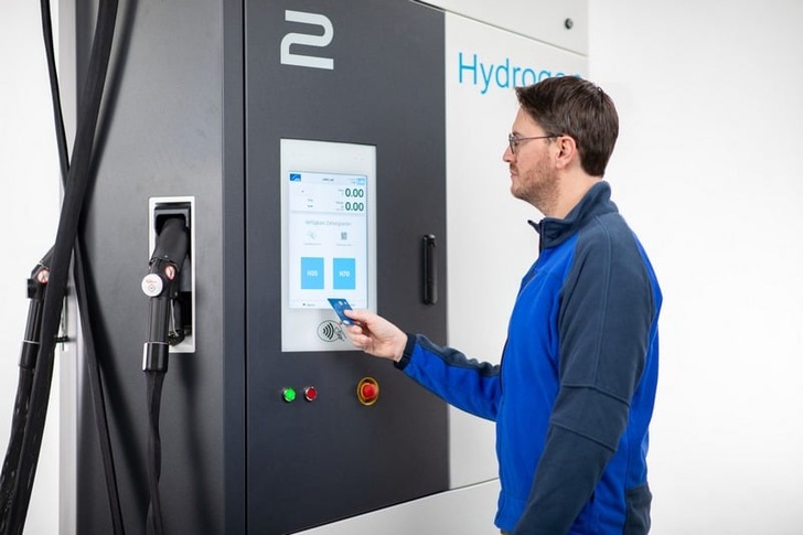 Abb. 15: Kartenzahlung an der neuen Linde-Wasserstoffzapfsäule, Foto: Linde, Linde, Halle 13, Stand D55/1