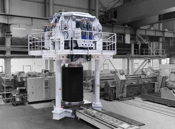 Die Stack-Presse für Elektrolyseure verfügt über eine Kraft von 800 Tonnen und kann Stacks mit einer maximalen Höhe von etwa 3 m, einem maximalen Durchmesser von 1,60 m und einem Gewicht von bis zu 12 Tonnen aufnehmen. Um während des Betriebs Montagearbeiten bei maximaler Sicherheit gewährleisten zu können, wurde bewusst auf einen hydraulischen Antrieb verzichtet. Stattdessen erfolgt das Zusammendrücken des Stacks innerhalb der Presse mit sechs servomotorisch angetriebenen Spindeleinheiten. Diese werden im Gleichlaufverfahren betrieben und sollen damit eine besonders homogene Komprimierung des Stacks ermöglichen.