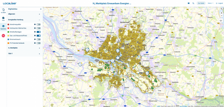 Das Branchennetzwerk Erneuerbare Energien Hamburg (EEHH) hat gemeinsam mit dem Berliner IT-Unternehmen Localiser RLI einen digitalen Wasserstoffmarktplatz für die Metropolregion Hamburg entwickelt. Die Plattform funktioniert als Suche-Biete-Portal und steht neben den über 300 Mitgliedsunternehmen des Clusters auch externen Akteuren aus Industrie und Energiewirtschaft offen. Anmeldung und Nutzung sind kostenfrei.