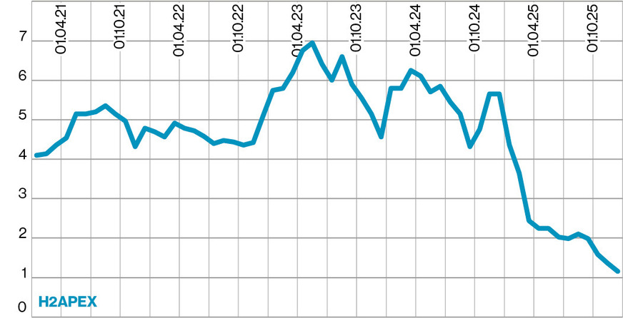 H2APEX Group SCA Das im Jahr 2000 gegründete und in Rostock ansässige Unternehmen (ehemals exceet Group) hat sich auf die „Entwicklung, Planung und den Bau von wasserstoffproduzierenden Anlagen“ spezialisiert. In den ersten neun Monaten des Jahres 2025 fiel der Umsatz von 25,2 Millionen auf 5,2 Millionen Euro, während der Verlust von 18,9 Millionen auf 28,1 Millionen Euro stieg.