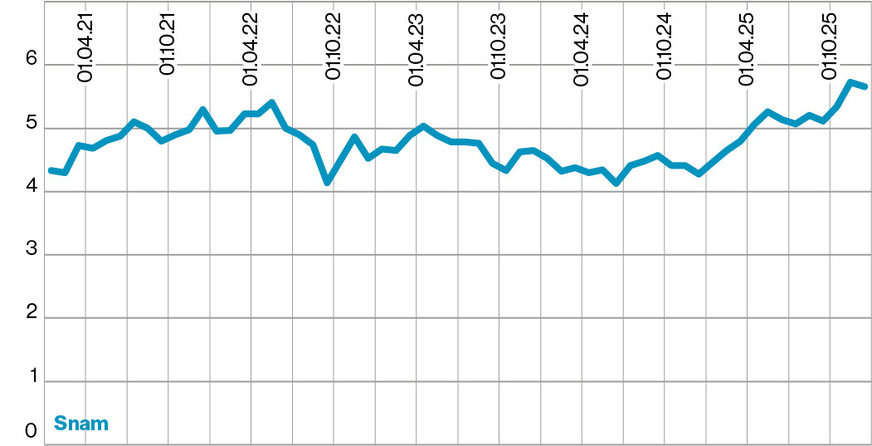 Im 3. Quartal 2025 stieg der Umsatz – u.a. aufgrund grösserer LNG-Importe – um sieben Prozent auf 2,85 Mrd. Euro, der bereinigte Gewinn um zehn Prozent auf 1,1 Mrd. Euro. 2025 hat Snam seine sechs Prozent Beteiligung an Adnoc Gas Pipelines verkauft. Der Plan, knapp 25 Prozent an der Essener Open Grid Europe GmbH zu erwerben, die in Deutschland das mit rund 12.000 km Länge grösste Ferngasnetz betreibt, scheiterte im November 2025 an Bedenken der deutschen Behörden in Bezug auf die Versorgungssicherheit (die State Grid Corporation of China ist indirekt an Snam beteiligt).
