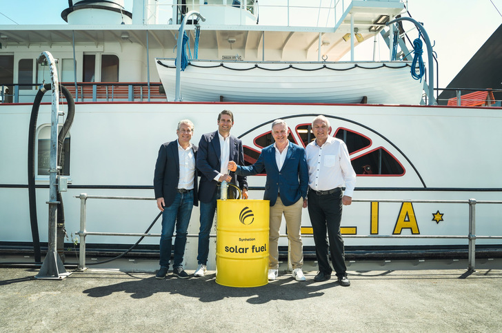 Die synthetischen Treibstoffe sind exakte Nachbauten ihrer jeweiligen fossilen Vorbilder. Sie sind daher mit herkömmlichen Verbrennungsmotoren kompatibel (drop-in fuels). Die SGV ist weltweit das erste Schifffahrtsunternehmen, das Synhelions Solartreibstoff nutzt. „Wir freuen uns, mit der SGV einen innovativen Partner an unserer Seite zu haben, der aktiv zur Skalierung unserer Technologie beiträgt“, sagt Gianluca Ambrosetti, Co-CEO und Mitgründer von Synhelion. Die SGV plant, künftig regelmäßig Solartreibstoff von Synhelion zu beziehen und hat dafür bereits einen fünfjährigen Abnahmevertrag unterzeichnet. Die in Jülich hergestellten Treibstoffe sollen nun schrittweise in weiteren Verkehrsträgern eingesetzt werden. Kürzlich fand bereits die weltweit erste Motorradfahrt mit Solar-Benzin von Synhelion statt.