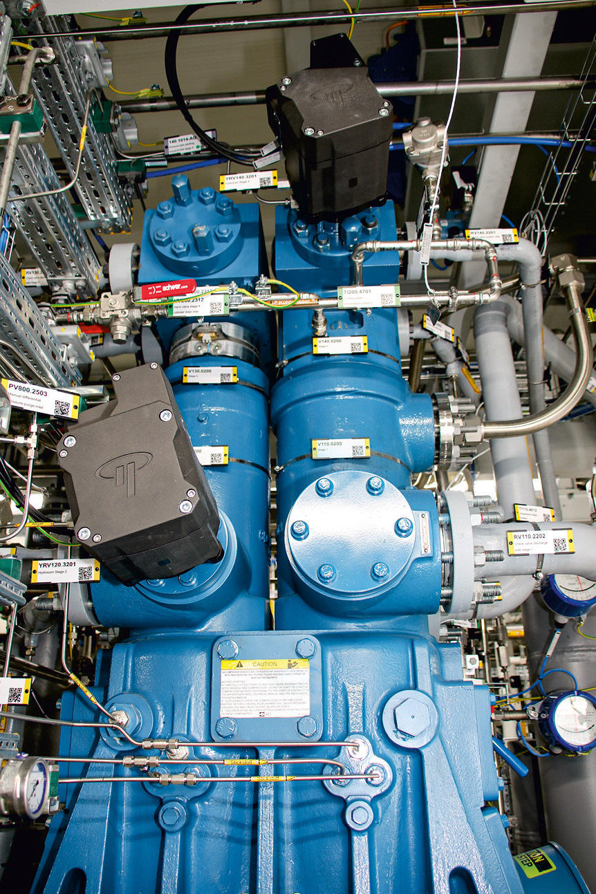 Seltener Einblick: Das Herzstück der Tankanlage in Düsseldorf, der Verdichter ist von Hoerbiger.