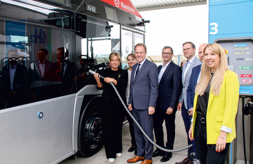 Ein Stück rheinaufwärts in ­Kerpen, am südwestlichen Stadtrand von Köln, ist die REVG Rhein-Erft-Verkehrsgesellschaft bereits umweltfreundlich unterwegs. Seit Ende 2024 werden die 111 vormaligen Dieselbusse mit HVO100 betankt. Die Quote für saubere Busse der EU-weiten Clean Vehicles Directive (CVD) erfüllt sie damit schon heute. Doch die CVD fordert innerhalb der 65-%-Quote bis 2030 auch einen Anteil von 37,5 % emissionsfreien Fahrzeugen. Das kann der Kraftstoff aus hydrierten Ölen und Fetten nicht leisten.
