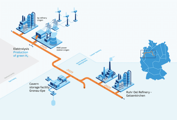 Rund um den GET H2 Nukleus in Nordrhein-Westfalen soll der Wasserstoff bereits im April 2025 fließen