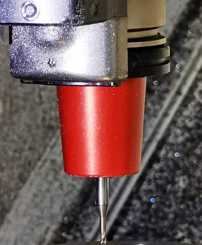 Bei Zerspanungsprozessen spielt die richtige Kombination von Kühlung, Schmierung und Entfernung von Spänen aus dem Arbeitsbereich eine entscheidende Rolle. Der MHT-Medienverteiler ermöglicht eine effiziente und zudem kosten- und energiesparende Herangehensweise. Kernelement ist eine konische Hülse, die dem Werkzeughalter fest zugeordnet und mit diesem beim Werkzeugwechsel getauscht wird, jedoch nicht mit dem Fräser mitrotiert. Sie wird unterhalb der Spindel angedockt und von dort mit Druckluft und Schmiermedium versorgt.