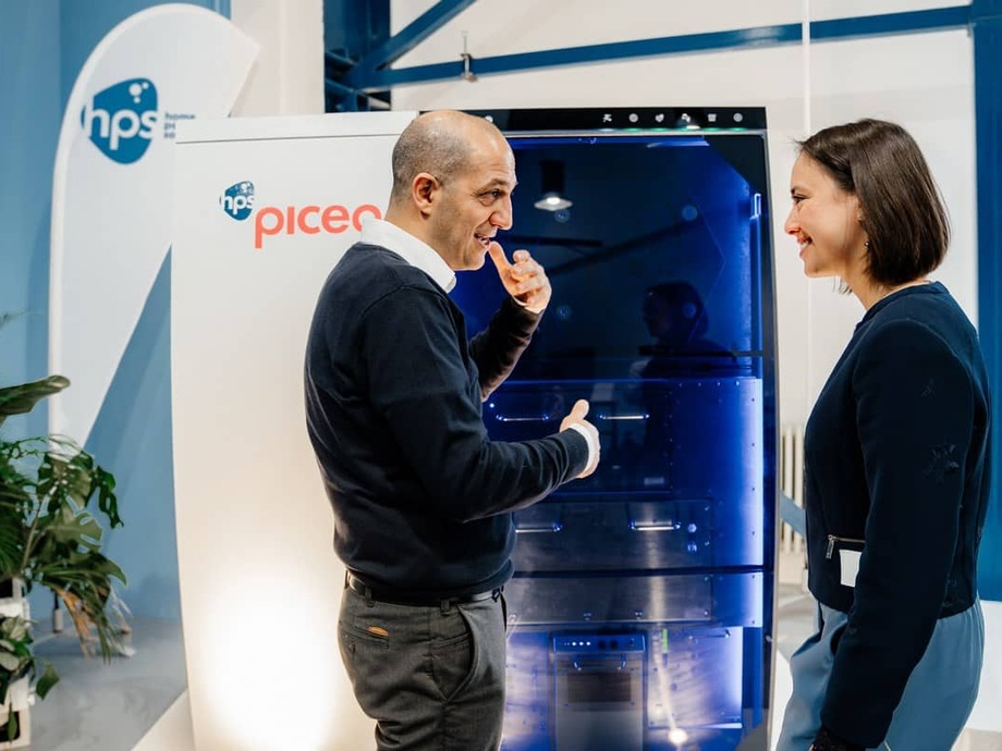 Der AEM-Elektrolyseur kommt von der deutsch-italienischen Firma Enapter. Das Kürzel AEM steht für Anionen-Austausch-Membran. Die Technologie nutzt kostengünstigere Materialien wie Stahl statt Titan und kombiniert die Vorteile der Alkali-Elektrolyse mit der Flexibilität und der Kompaktheit der PEM-Elektrolyse. Enapter-Mitgründerin Vaitea Cowan ist ebenfalls bei der Produktvorstellung dabei, wie auch Hans-Peter Villis, ehemaliger EnBW-Chef sowie Teilhaber der ersten Stunde und heute Aufsichtsratsvorsitzender bei HPS.