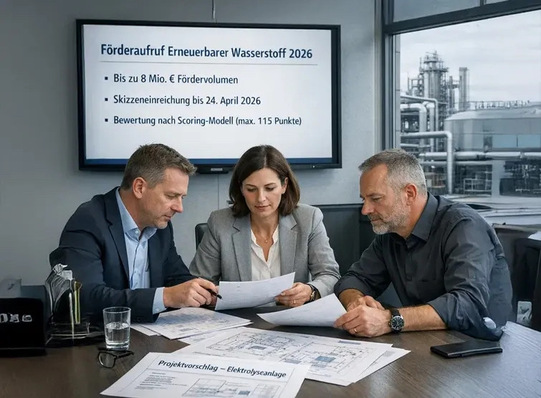 Das Energiewendeministerium Schleswig-Holstein hat einen Förderaufruf über bis zu 8 Millionen Euro für die Erzeugung und Speicherung von erneuerbarem Wasserstoff veröffentlicht. Unternehmen können Projektvorschläge bis zum 24. April 2026 einreichen.
