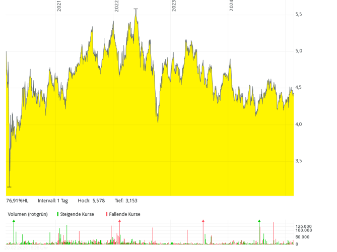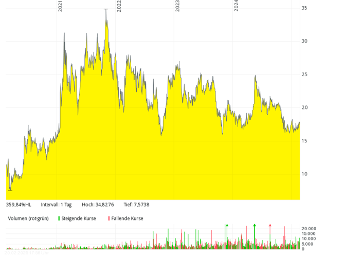 Das schon 1923 (von Oronzio De Nora) gegründete und seit 2022 börsennotierte Mailänder Unternehmen zählt zu den Weltmarktführern im Bereich der Elektrochemie. Zur Produktpalette gehören neben Elektroden und Beschichtungen für diverse Branchen (z. B. Chlorchemie), Elektronik-Komponenten, Wasserfiltern und Desinfektionstechnologien auch Komponenten für die Wasserstoff-Elektrolyse. De Nora ist in zehn Ländern präsent – in Italien, Japan und USA gibt es auch Forschungszentren – und nach dem Thyssenkrupp-Konzern mit knapp 25 Prozent der zweitgrößte Aktionär der thyssenkrupp nucera AG & Co. KGaA. 2023 stieg der Umsatz nur minimal, auf gut 856 Mio. Euro, der Gewinn aber um 158 Prozent auf 231 Mio. Euro. 2022 und 2023 wurden Dividenden (jeweils 0,12 Euro je Aktie) ausgeschüttet. Die Eigenkapitalquote ist mit zuletzt 68 Prozent relativ hoch, aber der Gewinn dürfte 2024 erheblich (schätzungsweise auf unter 80 Mio. Euro) zurückgegangen sein – wie auch der Aktienkurs, der von über 20 Euro (Mitte 2023) auf unter 7 Euro im Februar 2025 gesunken ist.