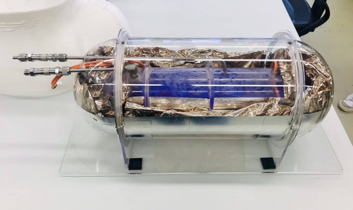 Abb. 4: Prinzipieller Aufbau eines Flüssigwasserstoffspeichers, wie er künftig in einer LiquiDrone getestet werden soll. Dieses Modell dient nur dazu, die Technik gegenüber Studenten oder Besuchern zu erklären.