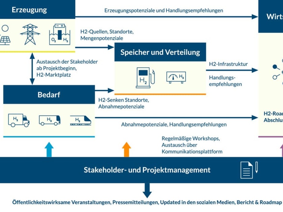 Das Projekt wird ein Jahr lang von einem Konsortium aus Wasserstoff- und MobilitätsexpertInnen begleitet. Das Reiner Lemoine Institut (RLI) leitet das Projekt auf Auftragnehmerseite und wird durch die IAV Ingenieurgesellschaft Auto und Verkehr, Consulting4Drive und das Institut für Klimaschutz, Energie und Mobilität (IKEM) unterstützt. Am Ende des Projekts werden die Erkenntnisse in einer regionalen Machbarkeitsstudie zusammengefasst.