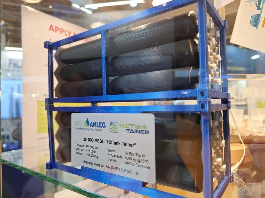 Eine Lösung fand sich in einem standardisierten Wechselbehälter für Wasserstoff – einem sogenannten Multiple-Element Gas Container (MEGC), auch „TankTainer“ genannt. Verschiedene Akteure wie Air Liquide oder Argo Anleg entwickeln verschiedene Formate für die unterschiedlichen Schiffstypen.