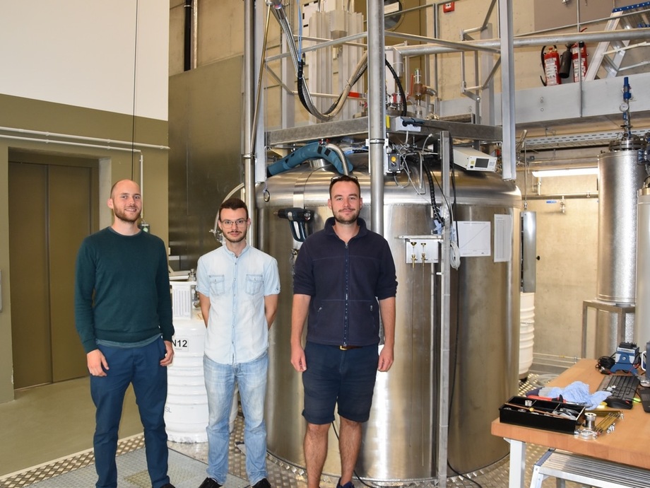Derartige Entwicklungen spiegeln wider, dass momentan im gesamten Kryogensektor seit einigen Monaten eine merkliche Themenverschiebung von flüssigem Helium zu Wasserstoff festzustellen ist. Wie die Doktoranden Henrik-Gerd Bischoff, Thomas Just und Maximilian Grabowski (s. Abb. 1) gegenüber HZwei mitteilten und wie auch Prof. Haberstroh bestätigte, werden derzeit „klassische Kernthemen von flüssigem Wasserstoff an den Rand gedrängt“. Insbesondere in den USA steht LH2 stark im Fokus, auch weil dort infolge der Raumfahrttechnik bereits umfassende Erfahrungen beim Umgang mit flüssigem Wasserstoff vorliegen.