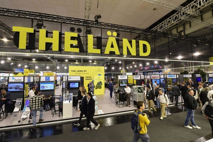 Baden-Württemberg bietet Unternehmen aus dem süddeutschen Bundesland die Möglichkeit, ihre Produkte und Leistungen auf einem Gemeinschaftsstand zu präsentieren. Der The-Länd-Gemeinschaftsstand (s. Abb. 9) wird von den Landesagenturen e-mobil BW und Baden-Württemberg International sowie der Wirtschaftsförderung Region Stuttgart organisiert und betreut. Alle drei Institutionen informieren über verschiedene Angebote zu Wissenstransfer, Vernetzung und Unterstützung für Wirtschaft und Wissenschaft in Baden-Württemberg.